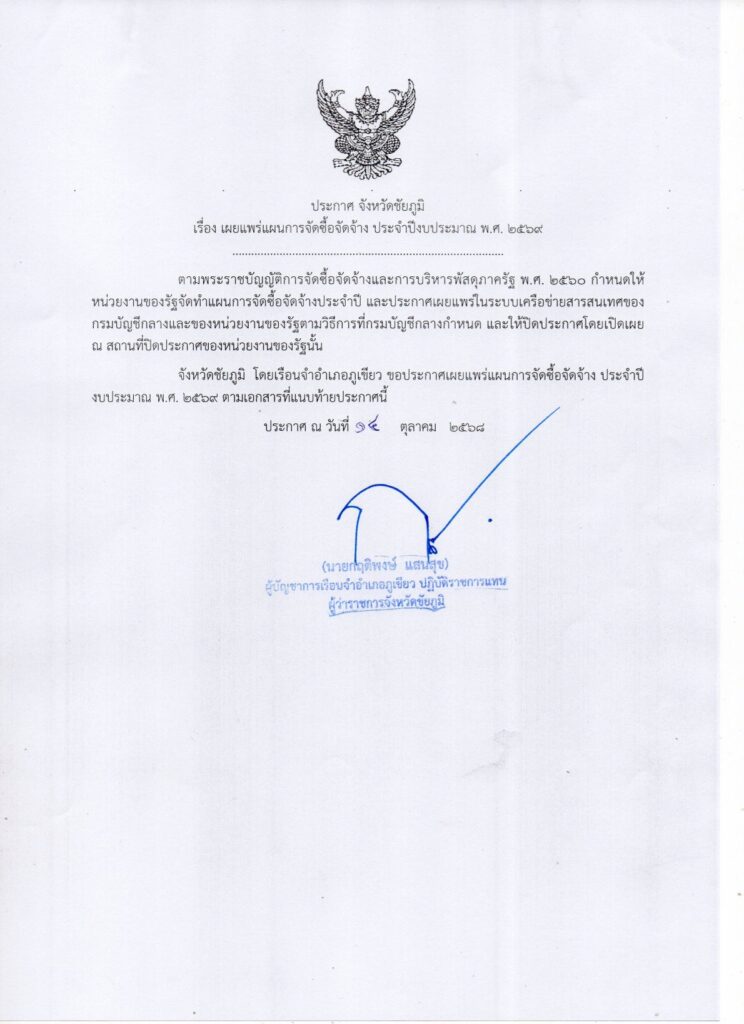 ประกาศเผยแพร่แผนการจัดซื้อจัดจ้าง ประจำปีงบประมาณ พ.ศ.2569